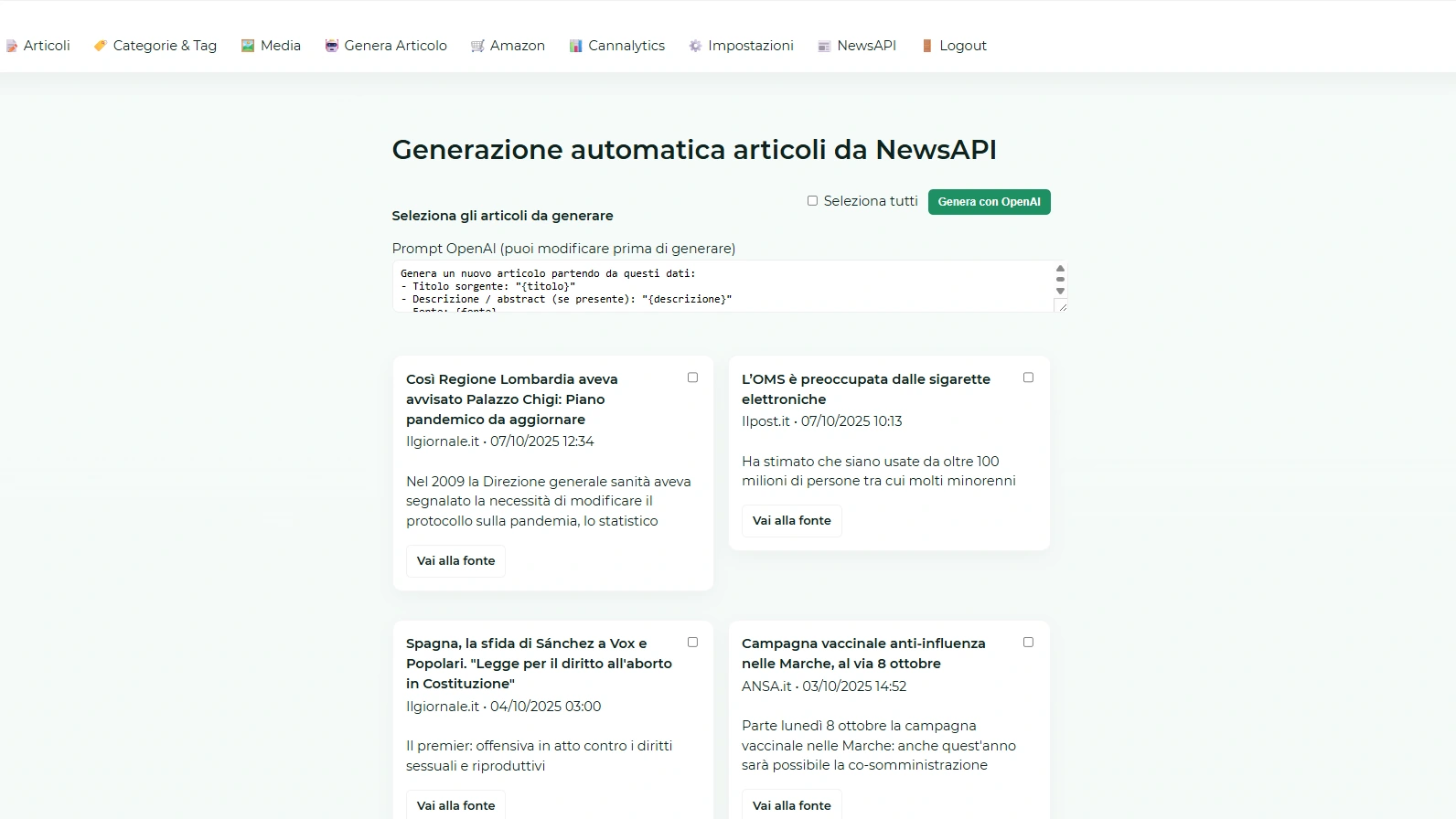 NewsAPI.org per arricchire il blog con notizie aggiornate